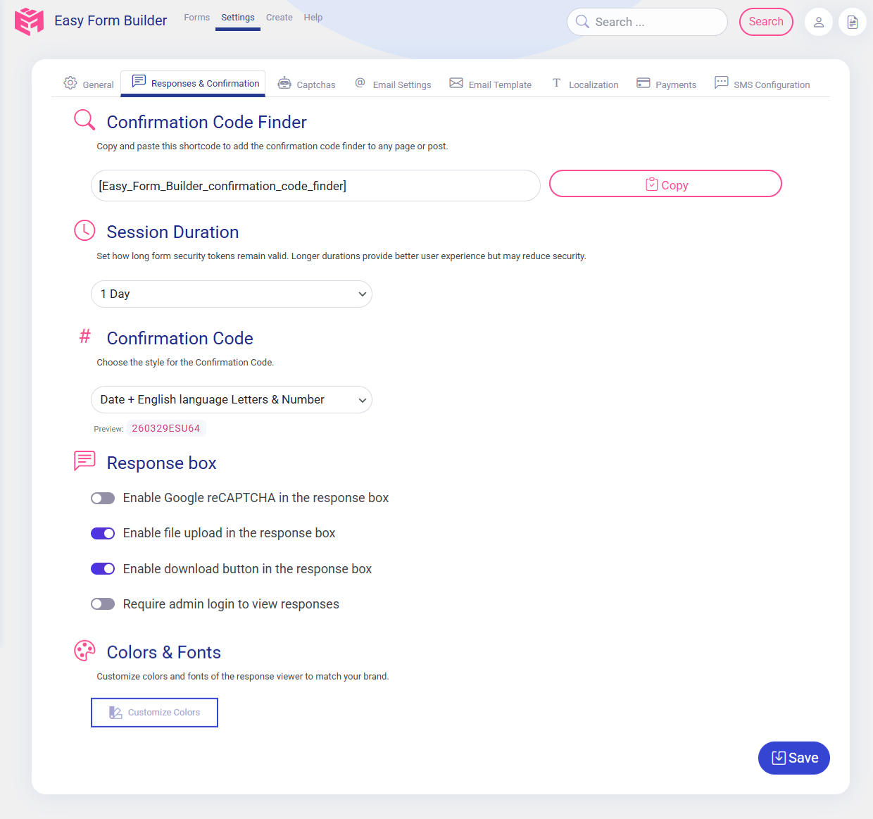 When users submit forms through the Easy Form Builder WordPress plugin, they receive a unique tracking code or confirmation code based on your chosen style. The seven available confirmation code styles for form submissions are: