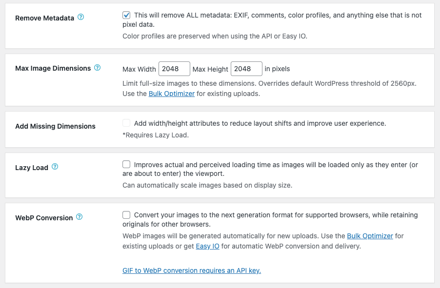 - changed: Bulk Optimization no longer requires Force Re-optimization to create WebP images for previously optimized images