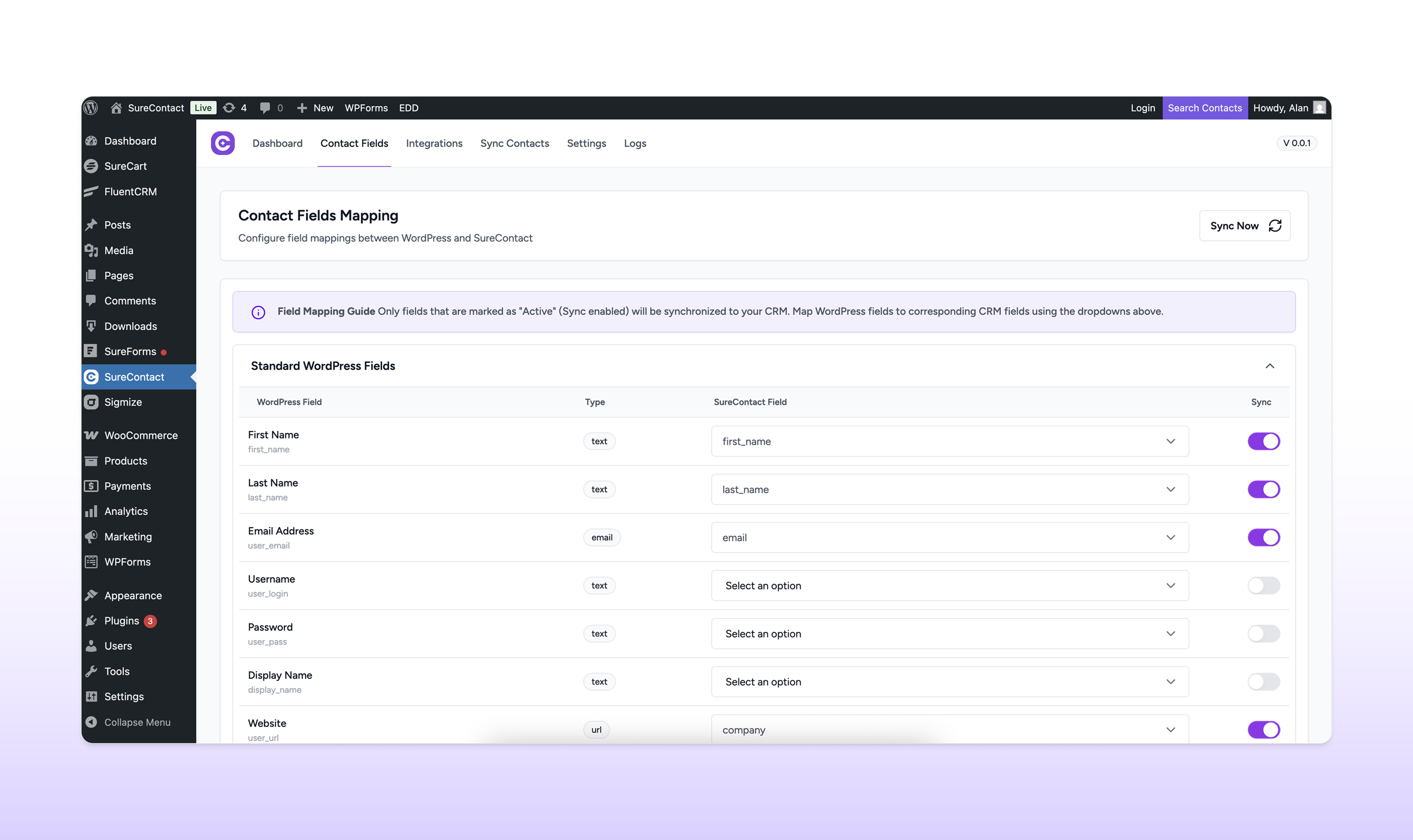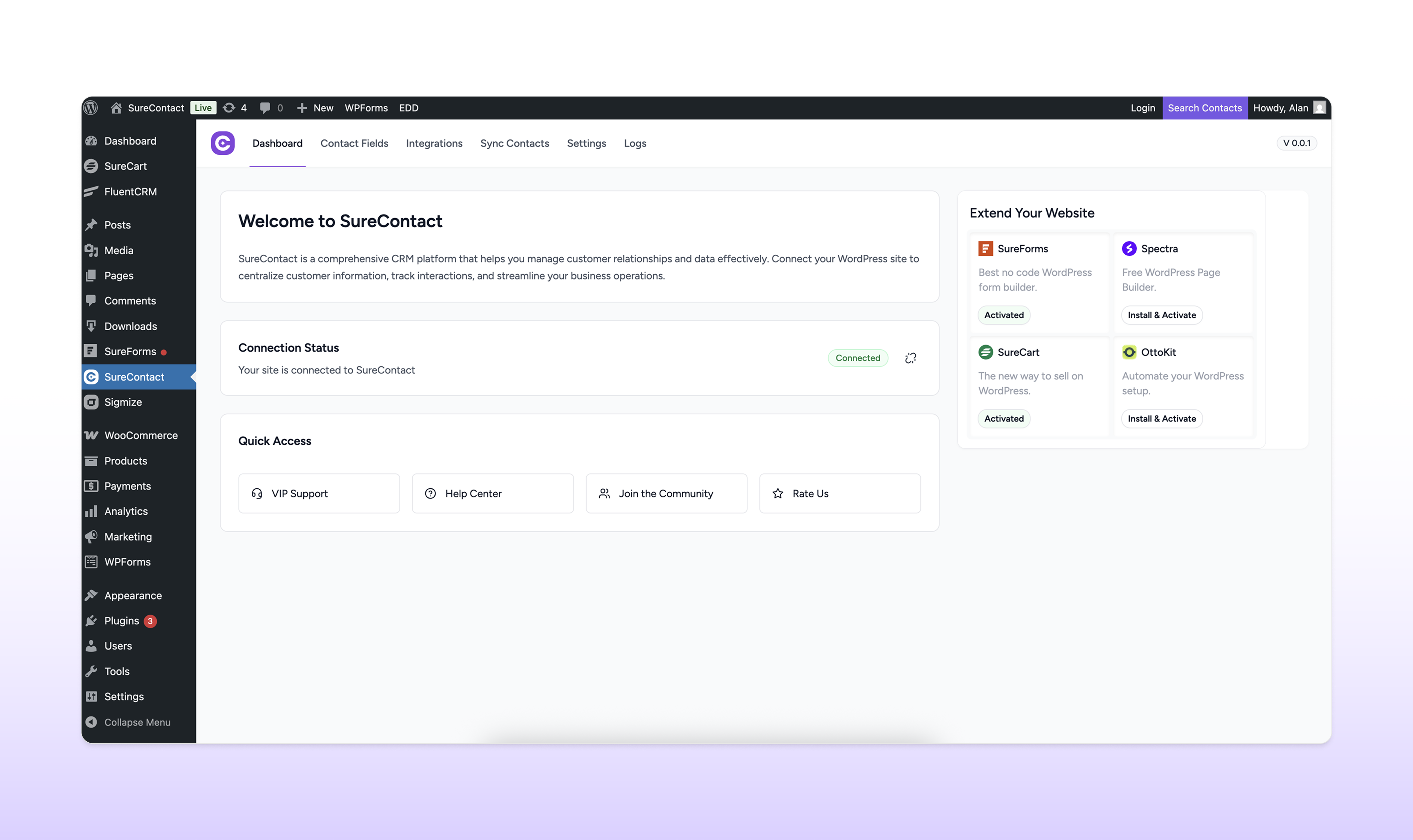 4. Navigate to SureContact in your admin menu
